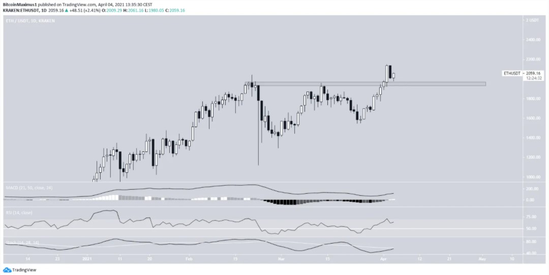 Tuy nhiên, nỗ lực tiếp theo đã thành công và ETH đạt mức giá cao nhất mọi thời đại mới tại 2.145 USD vào ngày 2 tháng 4.