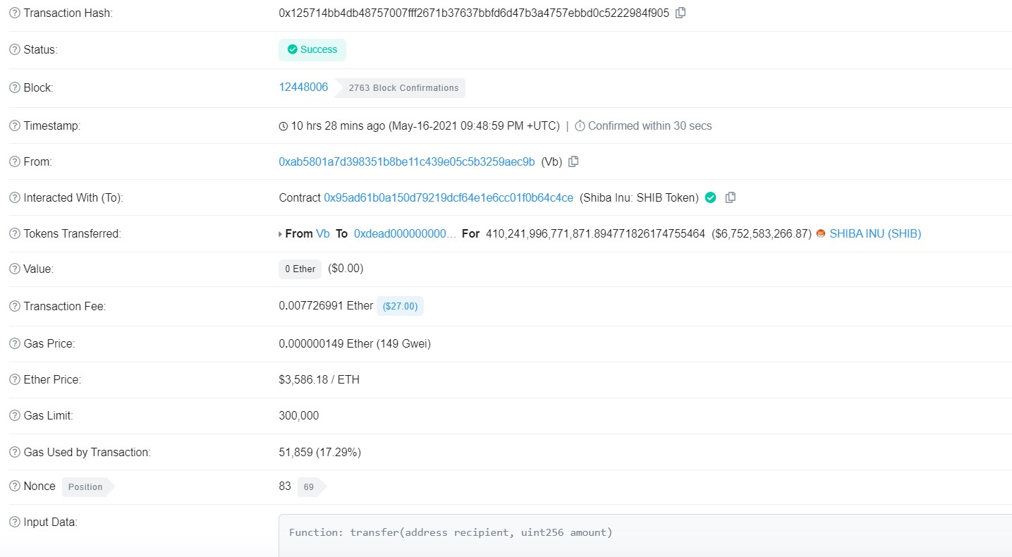 Vào thời điểm giao dịch, 410,24 nghìn tỷ SHIB token mà Buterin gửi từ ví của anh ấy có giá trị khoảng 6,74 tỷ USD.